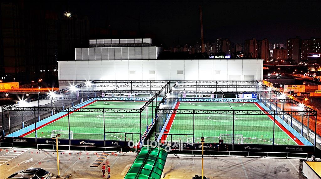 [아시아경제 김현정 기자] 홈플러스가 매장 옥상에 대형 풋살파크를 조성한다. 기존 쇼핑 시설에 엔터테인먼트적 요소를 결합해 부가 수익과 샤워효과를 노린다는 복안이다. 홈플러스는 스포츠마케팅 전문기업 HM스포츠와 손잡고 수원시 권선구에 위치한 서수원점 옥상에 풋살 전문구장 'HM 풋살파크'를 오픈했다고 11일 밝혔다. 지난해 10월 전체 매장면적의 3분의2 이상을 몰(Mall)과 문화센터 등 편의시설에 할애한 송도점을 오픈한 데 이어 새로운 형태의 구성을 선보이는 것이다. HM 풋살파크는 총 면적 약 2910㎡ 규모에 길이 42m, 너비 22m의 국제규격 실외구장 2개와 길이 33m, 너비 12m의 실내구장 2개를 갖췄다. 연중 어느 때나 지역 시민이나 전문 클럽이 풋살 경기는 물론 유소년 축구 및 생활체육을 위해 활용할 수 있도록 만들었다.홈플러스는 기존에도 인천 청라점, 인하점, 목동점에 각 1개 실외구장을 시범 운영해 왔지만 이처럼 대규모 풋살파크를 선보이는 것은 이번이 처음이다. HM 풋살파크는 가족 단위 방문이 많은 대형마트의 특성을 감안해 설계 단계부터 안전을 크게 강화한 것이 특징이다. 통상 7~10m 수준이던 지주 포스트 간격을 5m 이내로 촘촘하게 좁히고, 아이들 부상 방지를 위해 각 구장 전면에 1.5m 높이의 세이프 쿠션을 설치했다.홈플러스는 HM 풋살파크를 K리그 클래식 수원삼성 블루윙즈의 유소년 아카데미 훈련공간으로 활용하고 지역 풋살클럽 운영 및 클럽리그 개최, 지역 어린이집 및 시민들의 생활체육공간, 지역 소외계층을 위한 사회공헌활동의 장으로도 만들어 나갈 계획이다. 유휴부지를 활용해 부가 수익을 내는 것은 물론 '샤워 효과'도 상당할 것으로 기대된다. 실제 서수원점 풋살파크에 입점하는 서수원 블루윙즈 아카데미에만 모집 4주 만에 170명이 넘는 유소년이 가입했으며, 향후 클럽 회원 및 가족들의 방문으로 홈플러스 서수원점에만 연간 누적고객 기준 약 3만6000명이 신규 유입될 것이라는 관측이다.이동준 홈플러스 몰 리빙팀장은 "홈플러스 풋살클럽은 대형마트의 우수한 접근성과 공간을 활용, 도시에 부족한 체육시설을 채워 지역사회와 함께 상생할 수 있는 모델"이라며 "앞으로도 전통적인 대형마트의 틀을 깨고 고객이 매장을 찾는 것만으로도 즐거움을 느낄 수 있는 다양한 변신을 시도해 나갈 것"이라고 말했다.한편, 풋살파크는 오픈을 기념해 28~29일 양일간 초등학교 1~4학년 축구대회 '2016 HM SPORTS CUP 유소년 페스티벌'을 열고 학년별 우승팀에게 트로피와 상금을 전달하는 한편, 31일까지 예약 고객 대상 대관료 30% 할인행사를 실시한다. 자세한 사항은 'HM 풋살파크' 홈페이지(hmfutsalpark.com) 및 사무국(02-332-7807)으로 문의하면 된다.김현정 기자 alphag@asiae.co.kr<ⓒ세계를 보는 창 경제를 보는 눈, 아시아경제(www.asiae.co.kr) 무단전재 배포금지>