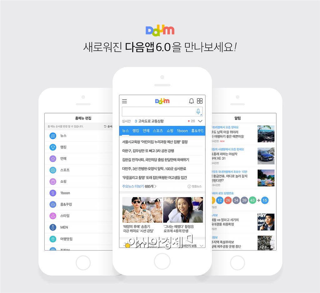 [아시아경제 한진주 기자] 카카오가 다음 앱을 입맛에 맞게 설정할 수 있도록 서비스를 개편했다. 주제별 탭을 원하는 순서대로 설정하거나 뉴스속보나 날씨 등 필요한 정보를 알림으로 받을 수 있다.11일 카카오는 다음앱의 탭 순서를 원하는대로 설정하는 홈편집 기능과 알림 메뉴를 신설하는 등 개인화 기능을 강화했다고 밝혔다. 카카오는 지난해 12월부터 이용자들의 관심사나 취향에 맞는 콘텐츠를 보다 풍성하게 제공하기 위해 펀웹툰, 홈앤쿠킹, 여행맛집, 스타일, MEN, 1boon 등 다양한 탭을 선보였다. 그 후 탭에서 원하는 콘텐츠를 탐색하는 이용자가 늘어나 평균 클릭수가 20% 상승했다. 카카오는 다음앱에서 '홈편집' 기능을 추가했다. 다음앱 좌측 상단의 메뉴 아이콘을 클릭한 후 홈편집 버튼을 누르면 탭 순서를 자유자재로 변경할 수 있다. 뉴스, 랭킹 순서 대신 이용자 개개인이 관심사에 맞게 화면을 구성하면 된다.다음앱에 신설된 '알림' 메뉴에서는 뉴스 속보, 날씨, 로또 번호, 추천 소식 등을 푸쉬 알림으로 제공한다. 200여개 채널에는 '이번주 나의 운세'나 '하루 5분 운동법' 등이 포함돼있고 '좋아요'를 누르면 해당 채널의 인기 소식을 받아볼 수 있다. 채널은 주제별로 화제가 되는 카페글, 동영상 등을 모아서 제공하며, 우측 상단의 네모 아이콘을 누르면 다양한 채널을 만날 수 있다. 다음앱은 '꽃검색' 서비스도 추가했다. 스마트폰 카메라로 꽃 사진을 촬영하면 꽃 이름을 알려준다. 카카오는 딥러닝(Deep Learning) 기술을 활용해 꽃검색 서비스를 구현했다. 이용자가 촬영한 꽃의 특징을 카카오가 보유한 DB와 매칭한 후 검색 결과를 제공한다. 꽃검색은 국내에서 주로 피는 약 400가지 꽃 품종을 대상으로 한다. 대상 품종은 지속적으로 늘려나갈 예정이다. 통합검색창 우측 아이콘을 눌러 이용할 수 있다..이준걸 카카오 다음앱팀장은 "향후 이용자의 탭 사용 패턴을 사전에 분석해 최적화된 탭 순서를 자동으로 추천해주고, 콘텐츠 추천시스템을 고도화 하는 등 이용자 편의성을 더 높여나갈 계획"이라고 말했다.개편된 다음 앱은 최신 버전(v.6.0)으로 업데이트 후 사용할 수 있다. 카카오는 다음앱 개편을 기념해 오는 16일부터 30일까지 1000만원 상당의 세계일주 여행상품권(1명), 국내 숙박이용권(5명)등의 경품을 제공하는 이벤트를 진행한다. 6월초 다음앱을 방문한 이용자 전원에게 카카오 프렌즈 한정판 이모티콘을 경품으로 지급하는 이벤트를 추가로 진행할 예정이다. 한진주 기자 truepearl@asiae.co.kr<ⓒ세계를 보는 창 경제를 보는 눈, 아시아경제(www.asiae.co.kr) 무단전재 배포금지>