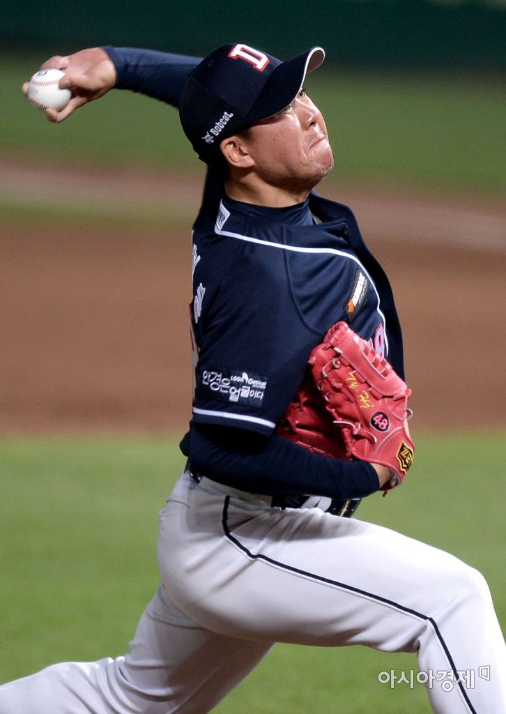 [문학=아시아경제 김현민 기자] 프로야구 두산 베어스와 SK 와이번스의 2016 KBO리그 경기가 11일 인천 문학구장에서 열렸다. 9회말 두산 마무리 이현승이 역투하고 있다. 김현민 기자 kimhyun81@asiae.co.kr<ⓒ세계를 보는 창 경제를 보는 눈, 아시아경제(www.asiae.co.kr) 무단전재 배포금지>