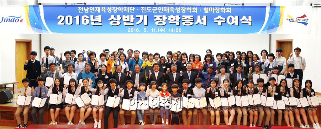 진도군이 2016년 상반기 장학증서 수여식을 하고 기념촬영을 하고있다.