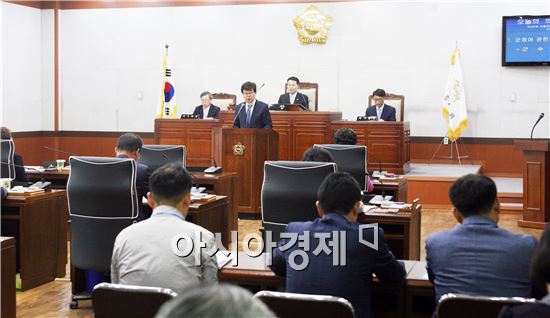 "제220회 장흥군의회 임시회 일정 마쳐""추가경정예산안 심사 및 군정 쟁점 현안 질문·답변 가져"[아시아경제 노해섭 기자]장흥군의회(의장 곽태수)는 4월 27일부터 5월 12일까지 16일 동안 본회의장에서 진행된 ‘제220회 장흥군의회 임시회’일정을 모두 마쳤다고 12일 밝혔다.군의회는 이번 임시회 기간 동안 예산결산특별위원회를 운영하고 2016년도 제1회 장흥군 세입·세출 추가경정 예산안을 심사했다.각 부서 세출 예산안에 대한 설명을 들은 군의회는 계수조정 과정을 거쳐 3일 추가경정 예산안을 처리했다.지난 9일부터 12일까지는 부서별 쟁점 현안을 중심으로 군정 질문·답변을 이어갔다. 이번 임시회에서는 올해 장흥군의 행사인 2016 장흥국제통합의학박람회 개최와 물축제, 기업유치 등이 중점 현안으로 거론됐다.곽태수 군의회 의장은 한우사육두수가 감소하고 가격이 상승하면서 수입육이 증가할 것으로 전망하면서, 적정 사육두수와 고급육 생산을 위해 노력하고, 자체 한우브랜드 개발방안을 강구 할 것을 강조했다.유상호 부의장은 복합영농을 하고 있음에도 억대부농이 적다며, 5천만원 이상 1억원 미만 농가들이 억대 부농으로 진입할 수 있도록 철저한 분석과 관리를 추진해 나갈 것을 당부했다.김화자 의원은 난대자생식물원에 조속히 아열대식물을 식재하여 내실있게 운영하고 무허가 축사 양성화 추진 시 설계비 등 주민 부담을 최소화하는 노력이 필요하다고 말했다.김복실 의원은 노인요양시설이 치매환자로 인해 출입문이 잠겨 있어 안전이 우려된다며, 화재 대비 예행연습과 거동불편 어르신에 대한 행동 매뉴얼 작성이 시급하다고 강조했다.왕윤채 의원은 대리 수산물위판장 중매인 간이판매시설과 관광객 쉼터 등의 보완이 필요하다고 말하고, 무산김 띠지와 박스의 위조 사례가 발생하지 않도록 철저한 관리가 필요하다고 강조했다.위등 의원은 한우산업 보호육성 5개년 계획 미수립을 지적하며, 한우가격 상승세가 계속되고 있는데 가격 하락 시 대처 방안을 강구하고, 장흥한우를 전국망을 갖추고 있는 우체국, 홈쇼핑 등과 연계해 판매하는 방안을 찾아야 할 것이라고 말했다.채은아 의원은 상수도요금 현실화율이 31.2%로 요금인상이 불가피하나, 현실화율 50% 수준으로 요금이 인상되고 하수도 요금도 병행 인상되므로 군민 의견 수렴과 사전 설명으로 부담을 최소화 할 수 있도록 노력해 달라고 말했다.김성 군수는 임시회 마지막 날인 12일 직접 답변자로 출석해 군의회 의원들의 질문에 답했다. 김 군수는 “군민의 복리증진과 지역발전을 위해 심도있는 질의와 의견을 제시해 주셔서 감사하다”며 “이번 임시회에서 제기된 의견들은 군민들의 소중한 뜻으로 알고 최선을 다해 실천하고 보완해 나가겠다”고 말했다.노해섭 기자 nogary@<ⓒ세계를 보는 창 경제를 보는 눈, 아시아경제(www.asiae.co.kr) 무단전재 배포금지>
