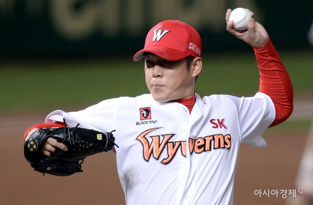[문학=아시아경제 김현민 기자]프로야구 두산 베어스와 SK 와이번스의 2016 KBO리그 경기가 12일 인천 문학구장에서 열렸다. 9회초 SK 마무리 박희수가 역투하고 있다. 김현민 기자 kimhyun81@asiae.co.kr<ⓒ세계를 보는 창 경제를 보는 눈, 아시아경제(www.asiae.co.kr) 무단전재 배포금지>