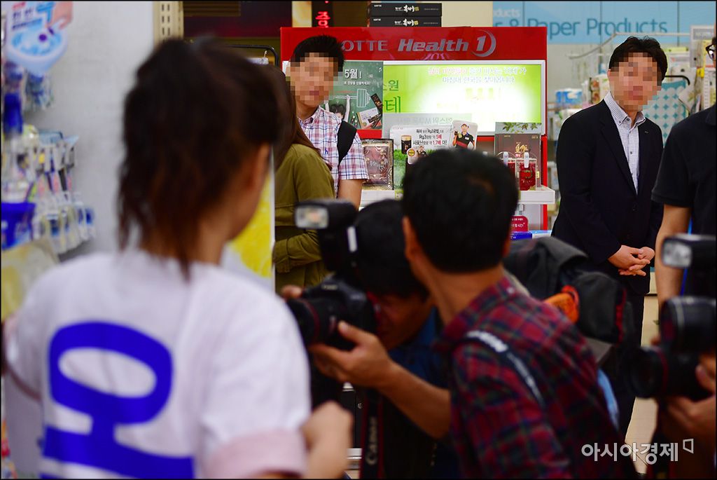 [아시아경제 윤동주 기자] 환경단체연합 등 옥시제품 불매운동 시민단체회원들이 13일 옥시제품을 판매중인 롯데마트 서울역점에서 연 옥시제품 판매 중단을 촉구하는 기자회견에 롯데마트 관계자가 나와 환경운동가와 취재진의 동향을 살피고 있다.윤동주 기자 doso7@asiae.co.kr<ⓒ세계를 보는 창 경제를 보는 눈, 아시아경제(www.asiae.co.kr) 무단전재 배포금지>