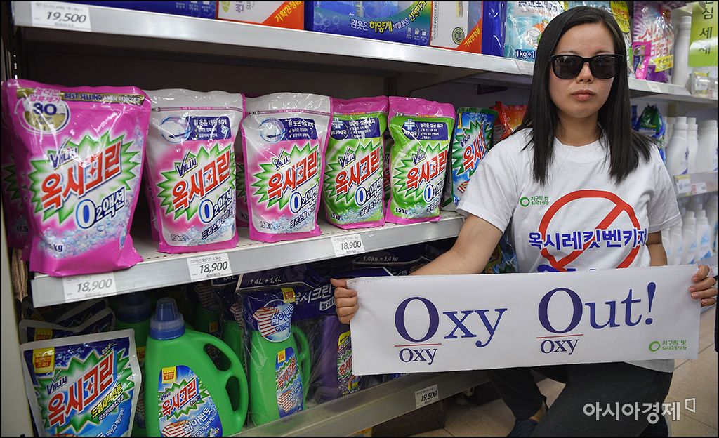 [아시아경제 윤동주 기자] 환경단체연합 등 옥시제품 불매운동 시민단체회원들이 13일 옥시제품을 판매중인 롯데마트 서울역점에서 옥시제품 판매 중단을 촉구하는 퍼포먼스를 갖고 있다.윤동주 기자 doso7@asiae.co.kr<ⓒ세계를 보는 창 경제를 보는 눈, 아시아경제(www.asiae.co.kr) 무단전재 배포금지>