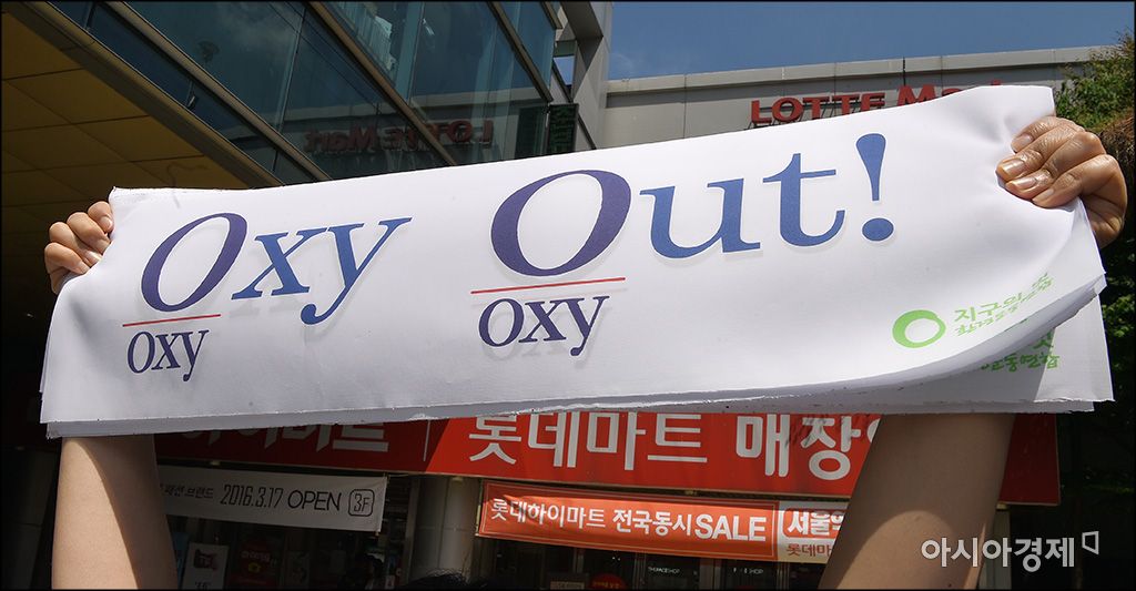 [아시아경제 윤동주 기자] 환경단체연합 등 옥시제품 불매운동 시민단체회원들이 13일 옥시제품을 판매중인 롯데마트 서울역점에서 옥시제품 판매 중단을 촉구하는 기자회견을 갖고 있다.윤동주 기자 doso7@asiae.co.kr<ⓒ세계를 보는 창 경제를 보는 눈, 아시아경제(www.asiae.co.kr) 무단전재 배포금지>