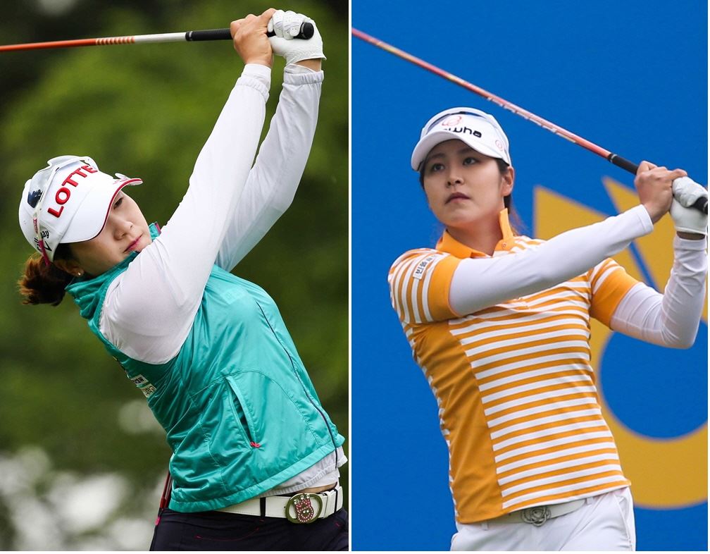 '동명이인' 김지현(오른쪽)과 김지현2가 NH투자증권레이디스 첫날 티 샷을 하고 있다. 사진=KLPGA