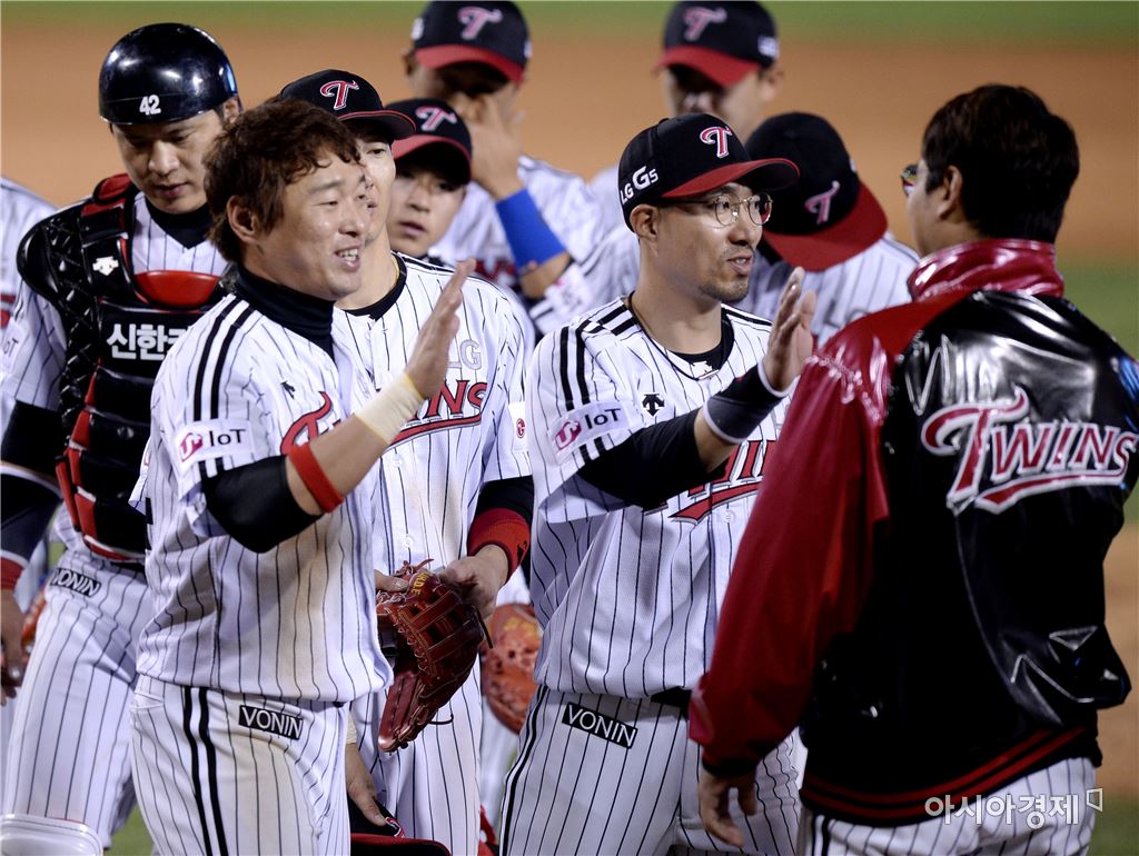 승리를 자축하는 LG[사진=김현민 기자]