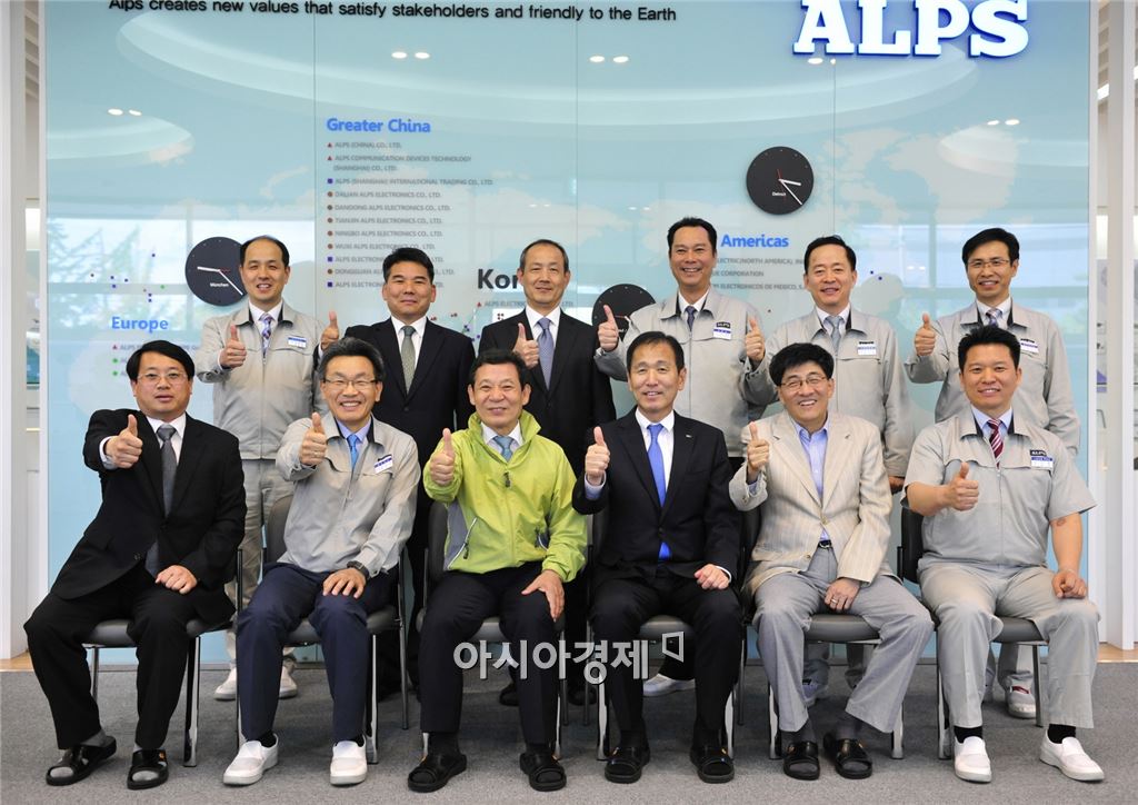윤장현 광주광역시장은 산업현장의 목소리를 듣고 기업과 협력체계를 구축하기 위해 13일 오후 광산구 하남산단에 위치한 한국알프스(주)를 방문해 기업 관계자들로부터 기업 현황을 듣고 기념사진을 촬영하고있다.