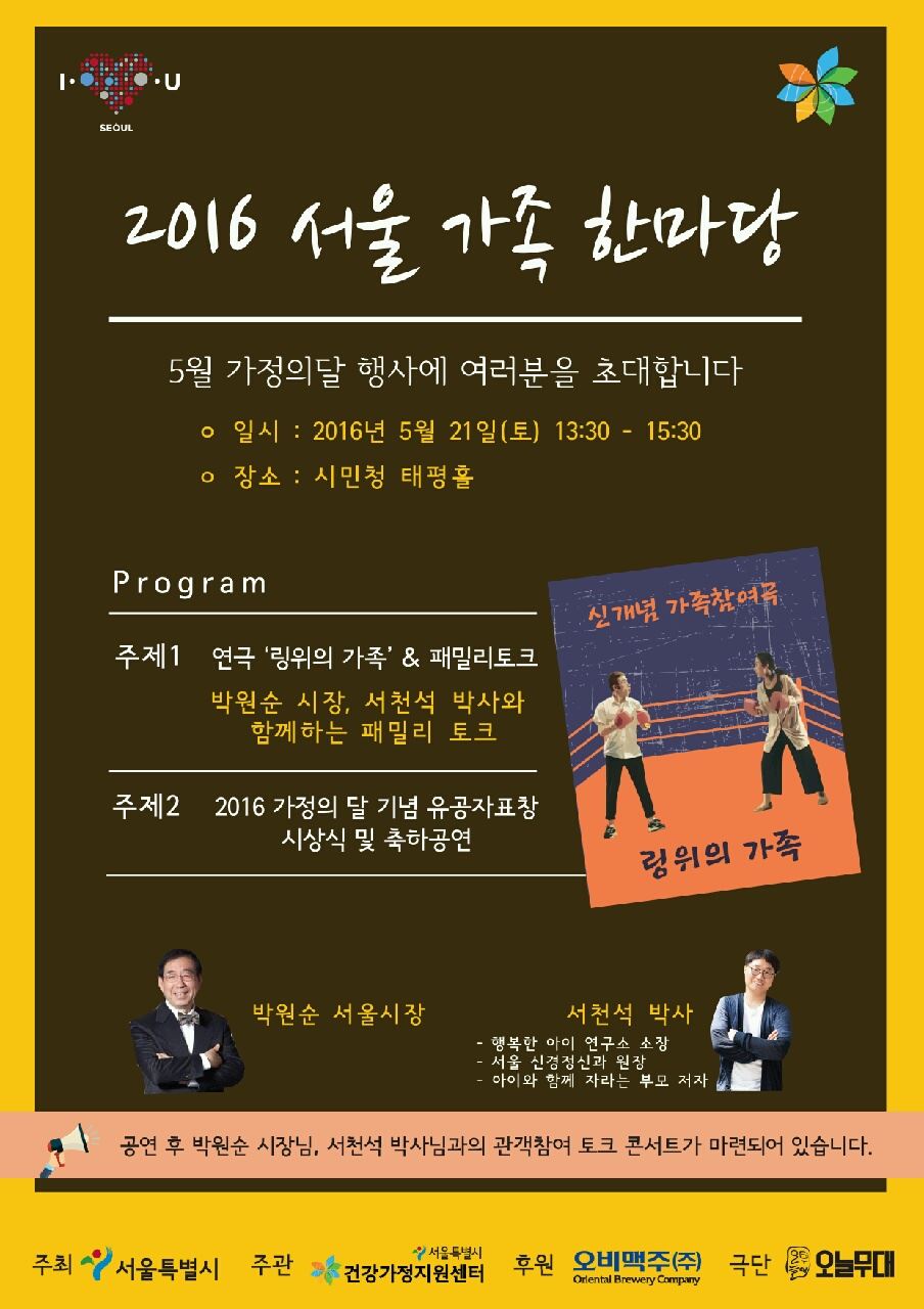 [아시아경제 이주현 기자]오비맥주가 5월 가정의 달을 맞아 부모와 자녀 간의 대화 소통을 통해 청소년 음주, 흡연, 게임 등 민감한 가족 내 문제에 대한 해법을 찾기 위한 ‘가족소통’ 연극을 상연한다.오비맥주는 오는 21일 오후 1시30분 서울시, 서울건강가정지원센터와 함께 시민청 태평홀에 마련한 ‘2016서울 가족한마당’ 행사에서 건전음주 캠페인 프로그램인 ‘패밀리토크’ 연극을 무대에 올린다고 16일 밝혔다. 이번 공연은 서울시 주최 ‘2016 서울 가족한마당’ 행사의 일환으로 상연된다.오비맥주가 지난해부터 상연중인 ‘패밀리토크’ 연극은 문화예술을 접목한 새로운 형태의 가족 대화소통 캠페인이다. 대중이 이해하기 쉬운 연극의 화법으로 청소년 음주와 흡연, 게임 등 민감한 가족이슈들에 대해 공론의 장을 만들고 바람직한 해법을 찾아보자는 것이 기본 취지다. ‘우리 집, 우리 가족 얘기’라고 느낄만한 생활밀착형 에피소드들과 부모와 자녀가 일상에서 겪는 불통의 상황들 그리고 가족의 고민을 재미있게 풀어내고 있다.올해의 경우 21일 서울시 첫 공연에 이어, 6월 셋째 주 광주광역시, 하반기 서울 공연 등이 예정돼 있다.이번 서울 첫 공연에서는 연극 관람이 끝난 뒤 관객 참여 코너도 마련된다. 청소년문제 전문가 서천석 박사(행복한 아이 연구소장·서울 신경정신과 원장)의 강연과 함께 관객이 직접 무대로 나와 가족 안에서 발생하는 갈등 상황을 공유하고 함께 고민해 보는 시간도 갖는다. 박원순 서울시장도 관객 참여 코너의 패널로 참여해 부모와 자녀 간 소통문제에 대한 개인 경험과 철학을 나눌 예정이다.오비맥주는 연극 상연과 함께 실생활에서 활용할 수 있는 부모 자녀 소통법을 담은 동영상을 제작해 페이스북 등 소셜네트워크서비스(SNS)를 통해 연중 캠페인을 벌일 계획이다.오비맥주 관계자는 “많은 부모들이 마음과 달리 대화법이 서툴러서 자녀와의 소통에 어려움을 겪는 것이 현실”이라며 “적절한 가족 대화 방법을 제시하고 많은 부모 세대의 참여를 이끌어냄으로써 건전한 음주문화 조성에도 기여할 수 있도록 노력할 것”이라고 말했다.오비맥주는 지난해부터 가족대화를 주제로 한 창작연극 ‘패밀리토크’를 제작, 전국 주요 도시에서 순회공연을 하며 청소년 음주예방을 위한 캠페인을 벌이고 있다.이주현 기자 jhjh13@asiae.co.kr<ⓒ세계를 보는 창 경제를 보는 눈, 아시아경제(www.asiae.co.kr) 무단전재 배포금지>