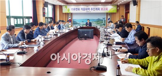 완도군(군수 신우철)은 13일 군청 상황실에서 기후변화 적응대책 분야별 추진사업 보고회를 개최했다.<br />