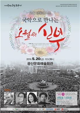 [아시아경제 노해섭 ]광주 광산구(구청장 민형배)는 오는 20일 저녁 8시 광산문예회관에서 퓨전국악연구회 아이리아의 ‘국악으로 만나는 오월의 신부’공연을 개최한다.'2016광산 오월문화제’의 일환으로 펼쳐지는 이번 공연은 시인 황지우의 첫 희곡인 ‘오월의 신부’를 국악반주에 맞춰 방수미 명창, 연극배우 박규상·고조영 등이 낭독한다. 이번 공연에서는 ‘오월의 신부’를 쓴 시인 황지우와 민형배 광산구청장도 특별 출연한다.희곡 ‘오월의 신부’는 계엄군이 전남도청에 재진입하기 전날인 80년 5월 26일을 배경으로 당시 그곳을 지켰던 교사, 재수생, 웨이터 등 소시민들과 죽기 진전 도청 커튼을 찢어 면사포를 만들어 혼례를 올린 젊은 남녀의 사랑 이야기이다.공연은 프롤로그, 광천동 낙원의 축일, 오, 청춘은 괴로워라, 개기일식, 징헌사랑, 마지막 목소리들, 에필로그 등 총 7막으로 구성되어있다. ‘무등의 아침’, ‘마른잎 다시 살아나’, ‘평화’, ‘임을 위한 행진곡’등 14곡을 연주하고 낭독한다. 공연은 관람료 1,000원(천원의 행복)으로 초등생 이상 누구나 관람가능하며 광산문화예술회관 홈페이지에서 예매가능하다.행사에 대한 자세한 안내는 광산구 문화체육과(062-960-8989, 8833)에서 한다.한편 ‘광산 오월문화제’는 광산구 임곡에서 나고 자란 5?18 당시 시민군 대변인 윤상원열사를 기억하기 위해 해마다 공연 및 전시를 광산문화예술회관에서 진행하고 있다. 25일 ‘창작판소리로 만나는 오월광주’공연을 끝으로 '2016광산 오월문화제’는 막을 내린다. 노해섭 기자 nogary@<ⓒ세계를 보는 창 경제를 보는 눈, 아시아경제(www.asiae.co.kr) 무단전재 배포금지>