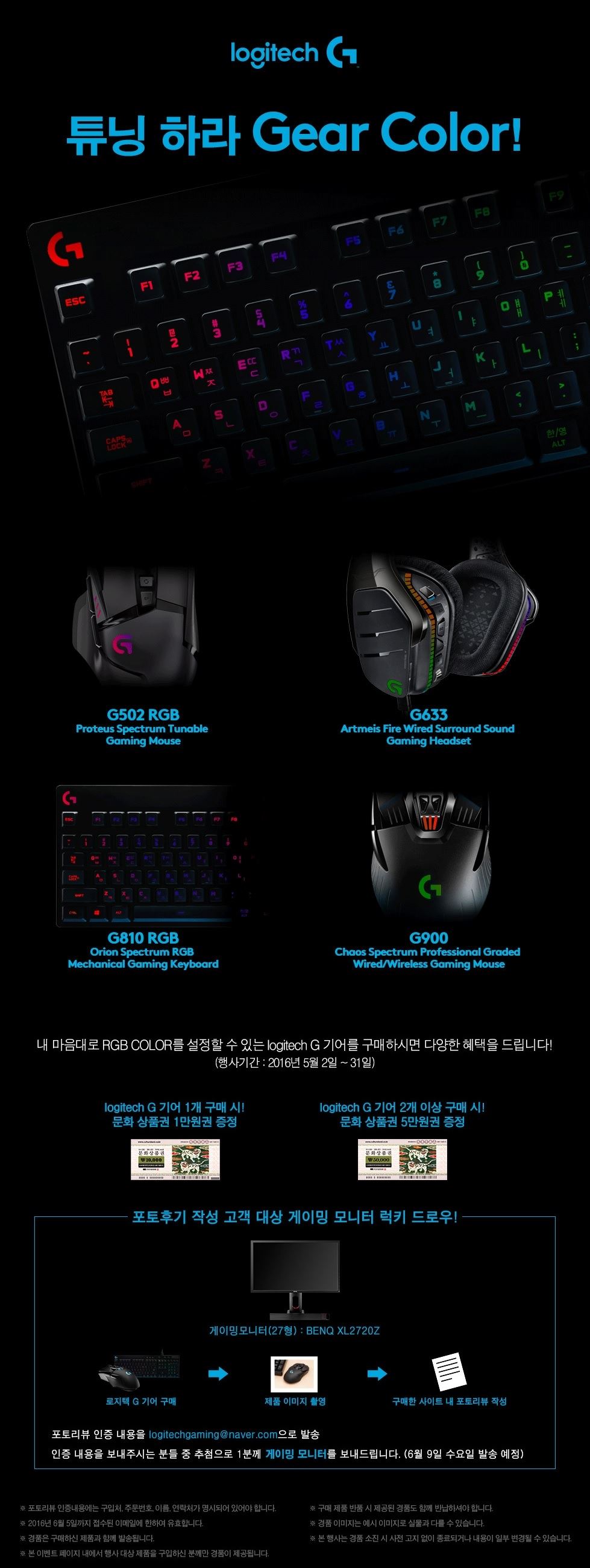 31일까지 로지텍 게이밍 기어 구매 시, 문화 상품권 증정포토후기 작성 고객 대상 추첨을 통해 게이밍 모니터 증정[아시아경제 김유리 기자] 로지텍 코리아는 로지텍 RGB 게이밍 기어 4종 구매 고객을 대상으로 다양한 혜택을 제공하는 '튜닝하라 Gear Color!' 프로모션을 진행한다.오는 31일까지 진행되는 이번 프로모션은 주요 온라인 오픈마켓(11번가, G마켓, 옥션, 인터파크)에서 진행되며, RGB 라이팅 기능으로 사용자 마음대로 컬러를 설정할 수 있는 로지텍 RGB 게이밍 기기 4종(마우스 G502 RGB, G900, 헤드셋 G633, 키보드 G810) 중 1개 제품 구매 고객에게 문화 상품권 1만원권을, 2개 이상 제품 구매 고객에게 문화 상품권 5만원권을 증정한다.해당 게이밍 제품 구입 후, 포토후기를 작성해 인증 내용을 메일로 보내준 고객 중 추첨을 통해 1명에게 게이밍 모니터(벤큐 XL2720Z, 27형)를 제공한다.이번 프로모션 대상 제품인 로지텍 게이밍 기기 4종은 RGB 라이팅 기능을 탑재해 최대 1,680만 색상과 밝기로 플레이어가 원하는 스타일과 환경을 로지텍 게이밍 소프트웨어(LGS)를 통해 만들어주는 것이 특징이다. 해당 소프트웨어를 통해서 로지텍 게이밍 마우스 G502, G900와 키보드 G810, 헤드셋 G633은 숨 쉬는 라이트 패턴 또는 색상 스펙트럼을 순환해 보여주도록 조절할 수 있으며, 각 기기들끼리 연동해 사용이 가능하다. 자세한 정보는 로지텍 코리아 홈페이지에서 확인할 수 있다. 김유리 기자 yr61@asiae.co.kr<ⓒ세계를 보는 창 경제를 보는 눈, 아시아경제(www.asiae.co.kr) 무단전재 배포금지>