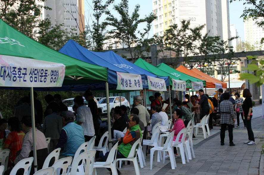 19일 LH 서초 4단지에서 열린 '찾아가는 보건소' 행사에서 입주민들이 의료 상담을 받고 있다.(제공: LH)