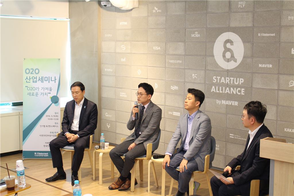 한국인터넷기업협회가 19일 주최한 O2O 산업 세미나에서 강연자들이 토론하고 있다.(사진:인터넷기업협회)