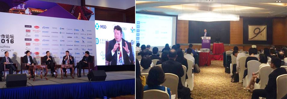 18일~19일 열린'차이나바이오(ChinaBIO) 2016'에 참가한 한미약품 손지웅 부사장(좌)과 이관순 대표이사(우)가 주제 토론 및 기업설명회를 진행하고 있다.