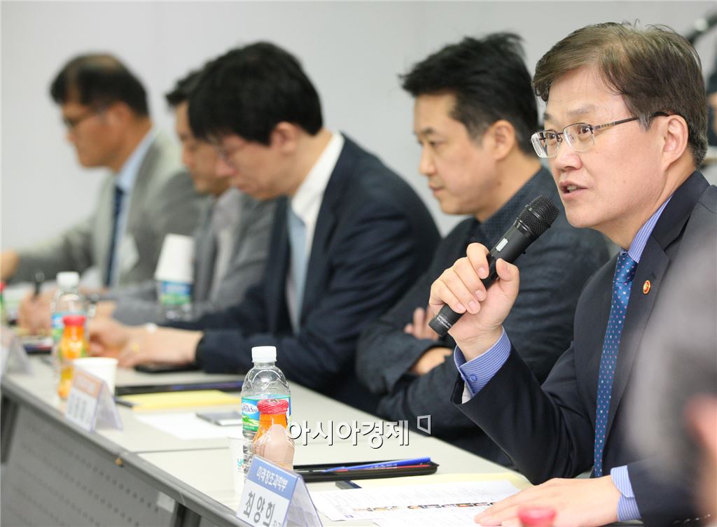 [아시아경제] 최양희 미래창조과학부 장관(오른쪽)이 19일 서울 종로구 서울창조경제혁신센터에서 정보보호산업 경쟁력 제고를 위한 정책간담회를 주재하고 있다.<ⓒ세계를 보는 창 경제를 보는 눈, 아시아경제(www.asiae.co.kr) 무단전재 배포금지>