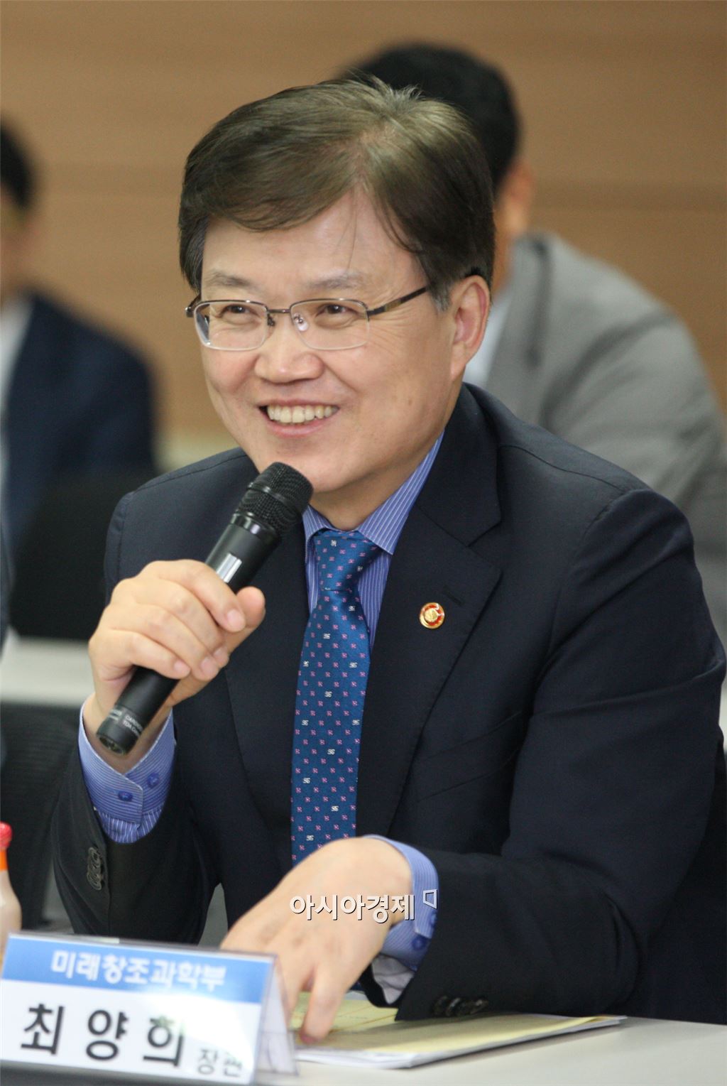 [아시아경제] 최양희 미래창조과학부 장관이 19일 서울 종로구 서울창조경제혁신센터에서 열린 '정보보호산업 경쟁력 제고를 위한 정책간담회'에서 활짝 웃고 있다.<ⓒ세계를 보는 창 경제를 보는 눈, 아시아경제(www.asiae.co.kr) 무단전재 배포금지>