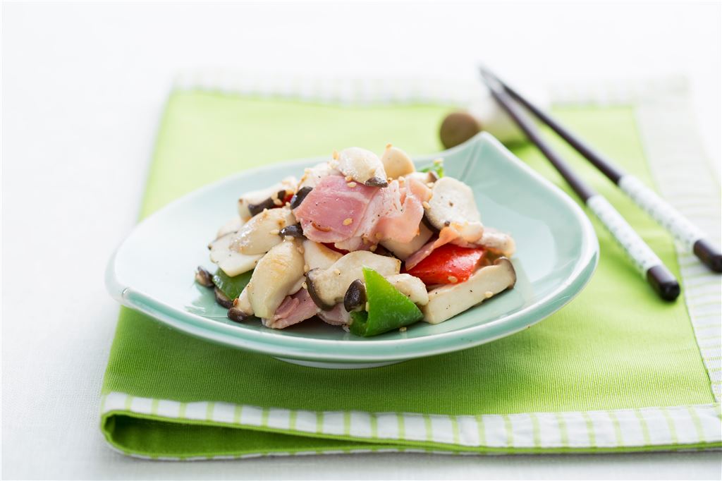 재료(2인분)꼬마 새송이버섯 100g, 피망·빨강 피망 1/3개씩, 베이컨 3줄, 식용유 적당량, 소금·후춧가루·깨소금 약간씩만들기▶ 요리 시간 15분1. 꼬마 새송이버섯은 2등분하고 피망, 빨강 피망, 베이컨은 한입 크기로 썬다. <br />