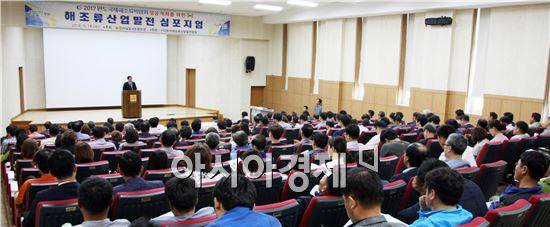 "전남수산경영인연합회 성공개최 지지결의문 채택""2017완도국제해조류박람회 성공개최 위한 심포지엄" [아시아경제 노해섭 기자]2017완도국제해조류박람회 성공개최를 위한 ‘해조류산업 발전 심포지엄’이 지난 18일 2016세계친환경디자인박람회장에서 열렸다. 한국해조류산업발전협회(대표이사 김창훈) 주관으로 열린 이번 심포지엄에는 해조류 관련 학계 및 연구기관, 관련 지자체, 어입인 등 200여명이 참여했다. 이번 심포지엄은 2017완도국제해조류박람회 개최 분위기 확산과 더불어 해조류 생산, 가공, 수출 등 생산현장에서 직접 이용가능한 지식과 정보를 제공하기 위해 마련됐다. 이날 행사는 완도군 한희석 해조류산업지원사업소장으로부터 2017완도국제해조류박람회 추진상황 보고에 이어 한국수산경영인연합회 전라남도연합회(회장 김동현)의 적극적인 참여와 지원을 다짐하는 박람회 개최 지지결의문 채택이 있었다. 또한 국립수산과학원 황은경 박사의 ‘양식산업 활성화를 위한 해조류 신품종 양식기술개발’, (주) 보타메디 신현철 박사의 ‘해조유래 “Enabling Biomaterial"을 통한 지속가능형 고부가 해조화학산업 조성’, 김산업연합회 양금철 전 본부장의 ‘해조류 수출동향 및 활성화 전략’의 주제발표에 이어 종합토론순으로 진행됐다. 신우철 완도군수는 "2017완도국제해조류박람회는 비즈니스 산업형 박람회로 우리지역은 물론 국가해조류산업의 미래를 설계하는 희망박람회로 개최할 계획”이라며 “박람회를 통해 일본의 원전사고 이후 중국과의 치열한 경쟁속에서 우리나라가 해조류 세계시장의 주도권을 확실히 선점하는 기회로 활용하고, 미주·유럽 등 새로운 소비시장을 개척하는 기회로 활용해 나갈 계획”이라고 말했다. 2017완도국제해조류박람회는 ‘바닷말의 약속, 미래에의 도전’이라는 주제로 2017년 4월 14일부터 5월 7일까지 24일간 완도해변공원 일원에서 개최된다.노해섭 기자 nogary@<ⓒ세계를 보는 창 경제를 보는 눈, 아시아경제(www.asiae.co.kr) 무단전재 배포금지>