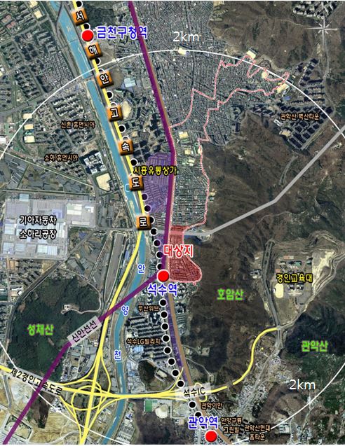 [아시아경제 박종일 기자] 금천구 석수역세권이 서울 서남부 지역의 새로운 중심지로 탈바꿈할 전망이다.금천구(구청장 차성수)는 석수역세권 지역인 시흥3동 970번지 일대에 대한 지구단위계획(안)이 지난 10일 제6차 서울시 도시재정비위원회 심의에서 수정·가결 됐다고 밝혔다.석수역세권 지역 개발 지침 성격인 지구단위계획(안)이 심의 통과됨에 따라 시흥대로변은 주거·업무·상업 복합시설이 들어설 수 있게 됐다. 또 철재상가 배후 주거지역은 호암산 자연경관과 조화를 이루며 인접한 안양시 석수동의 아파트 단지와도 균형을 갖춘 중저층 공동주택단지로 개발할 수 있는 기반이 마련됐다.