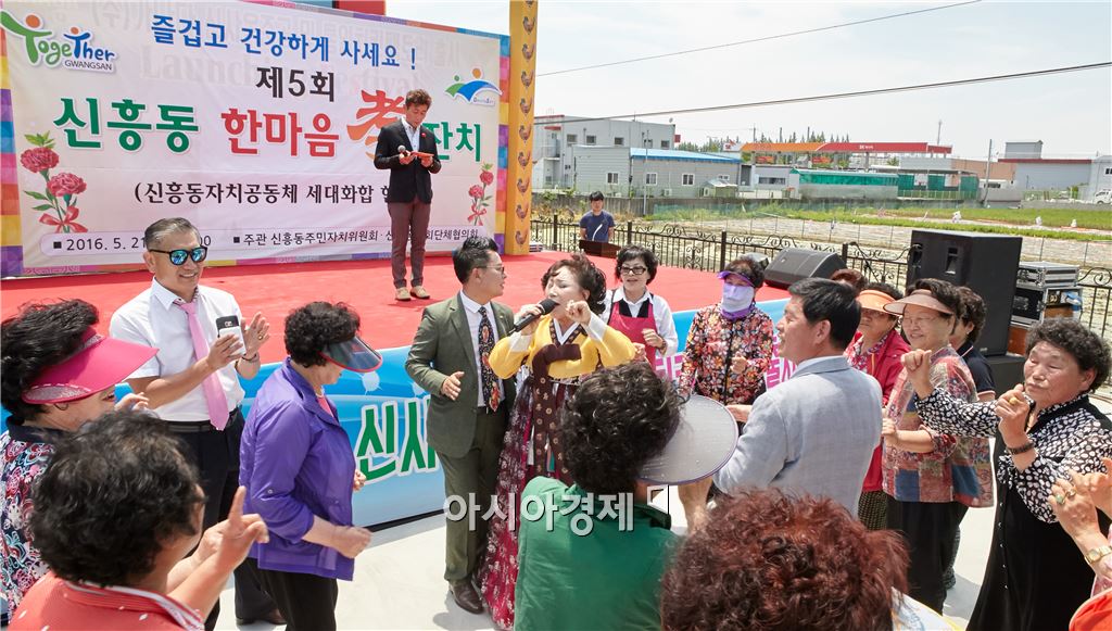 [아시아경제 노해섭 기자]광주 광산구 신흥동(동장 박희술) 주민들이 지난 21일 ‘한마음 효 잔치’를 개최했다. 신흥동주민사회단체협의회(회장 최정학)가 주최한 한마음 효 잔치에는 마을 어르신과 주민 200여 명이 참여했다.㈜가나다 사옥에서 진행한 효 잔치에서 주민과 어르신들은 한데 어울리며 보다 살기 좋은 마을만들기에 함께 할 것을 다짐했다.노해섭 기자 nogary@<ⓒ세계를 보는 창 경제를 보는 눈, 아시아경제(www.asiae.co.kr) 무단전재 배포금지>