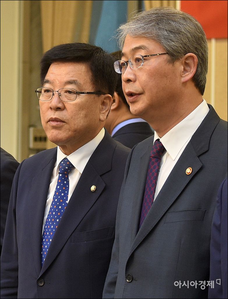 [아시아경제 윤동주 기자] 김광림 새누리당 정책위의장과 임종룡 금융위원회 위원장이 24일 서울 여의도 국회에서 열린 조선·해운업 구조조정관련 당정협의에 참석, 회의 시작 전 이야기를 나누고 있다.윤동주 기자 doso7@asiae.co.kr<ⓒ세계를 보는 창 경제를 보는 눈, 아시아경제(www.asiae.co.kr) 무단전재 배포금지>