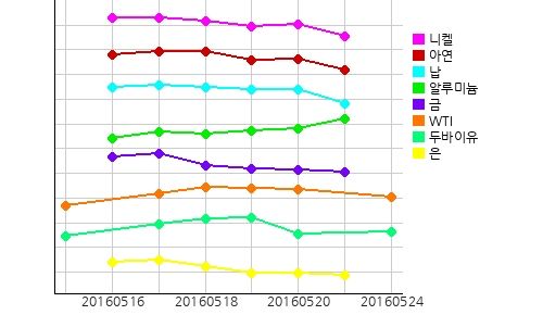 국제 원자재 시장에서 WTI(서부텍사스산원유)의 현물시세가 전일 대비 0.68 달러 떨어진 배럴당 47.48 달러를 기록했고, 두바이유 현물시세는 전일 대비 0.12 달러 오른 배럴당 44.87 달러를 기록했다.금 현물시세는 전일 대비 3.26 달러 떨어진 온스당 1249.1 달러를 기록했고, 은 현물시세도 전일 대비 0.15 달러 떨어진 온스당 16.39 달러를 기록했다.주요광물시세는 알루미늄이 전일 대비 톤당 8.55 달러 올라 1543.9 달러를 기록하는 반면, 주석이 전일 대비 톤당 555.5 달러 떨어져 15913.5 달러를 기록했고 니켈, 납, 아연 모두 하향세를 보였다.환율