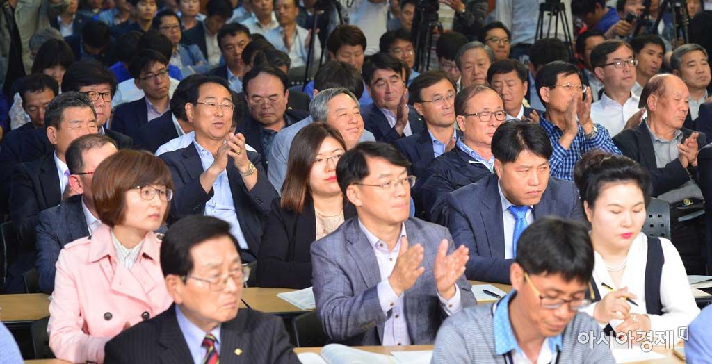 [아시아경제 백소아 기자] 24일 서울 중구 포스트타워에서 열린 부정청탁 및 금품수수의 금지에 관한 법률(일명 김영란법) 시행령 입법예고안 공청회에서 농축산업 관계자들이 김홍길 한국농축산연합회 운영위원의 발언이 끝나자 박수치고 있다.백소아 기자 sharp2046@asiae.co.kr<ⓒ세계를 보는 창 경제를 보는 눈, 아시아경제(www.asiae.co.kr) 무단전재 배포금지>