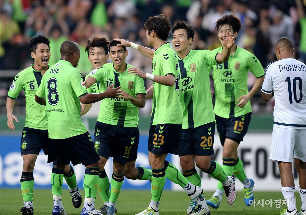 [전주=아시아경제 김현민 기자] 전북 현대와 멜버른 빅토리(호주)과의 2016 AFC 챔피언스리그(ACL) 16강 2차전이 24일 전주월드컵경기장에서 열렸다. 전북 레오나드로가 전반 선제골을 성공시키고 동료들과 기뻐하고 있다. 김현민 기자 kimhyun81@asiae.co.kr<ⓒ세계를 보는 창 경제를 보는 눈, 아시아경제(www.asiae.co.kr) 무단전재 배포금지>