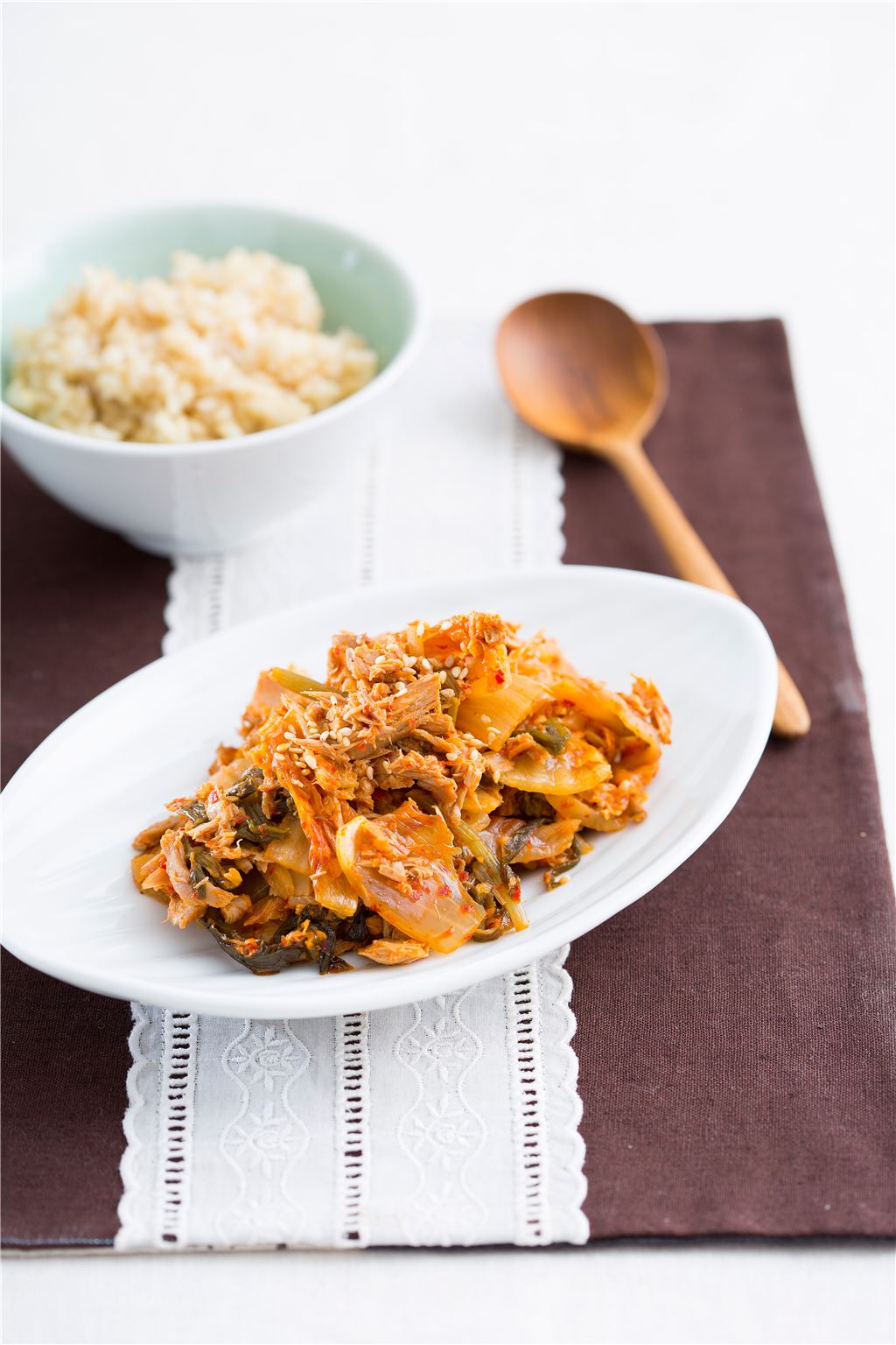 재료(2인분)묵은지 1/2포기, 참치(통조림) 1통, 대파 1/2대, 들기름 3, 설탕 약간만들기▶ 요리 시간 20분1. 묵은지는 먹기 좋은 크기로 썰고 참치는 체에 밭쳐 기름을 빼고 대파는 어슷하게 썬다.<br />