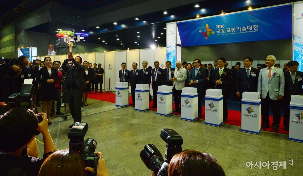 [아시아경제 백소아 기자] 25일 서울 강남구 코엑스에서 열린 2016 국토교통기술대전에서 개막식 퍼포먼스를 위해 관계자들이 드론을 이용한 열쇠전달을 하고 있다.백소아 기자 sharp2046@asiae.co.kr<ⓒ세계를 보는 창 경제를 보는 눈, 아시아경제(www.asiae.co.kr) 무단전재 배포금지>