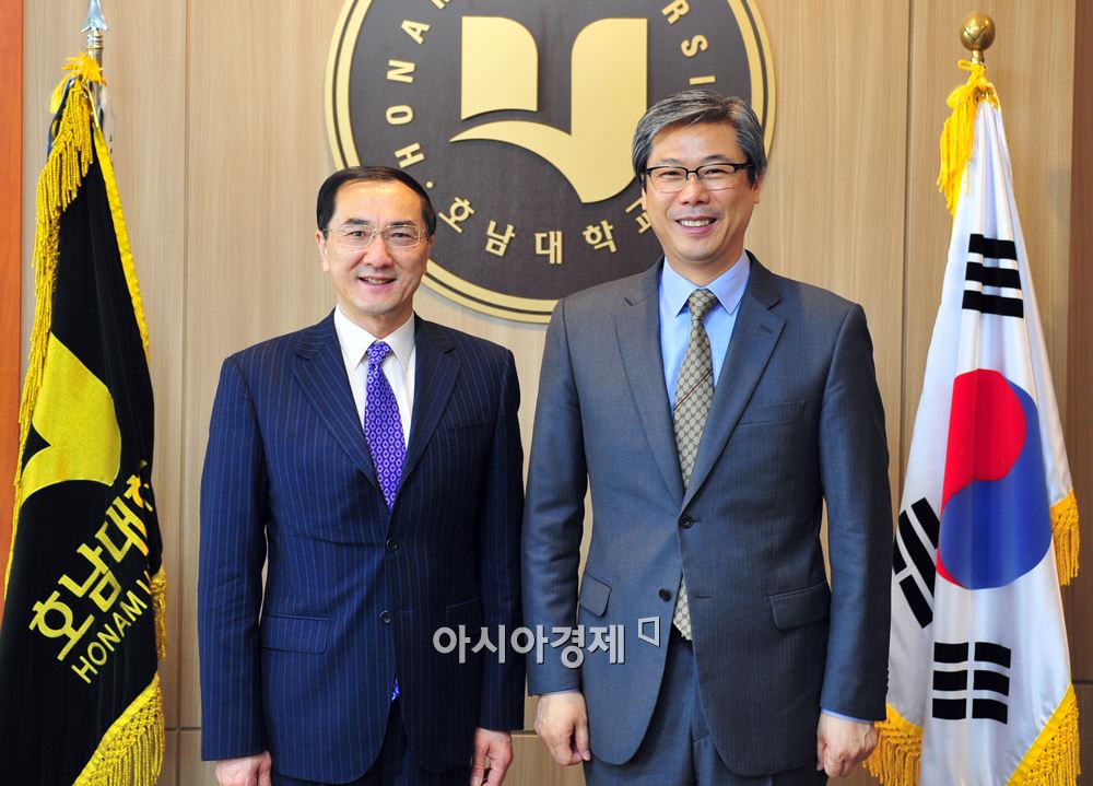 [아시아경제 노해섭 기자]신임 쑨시엔위(孫顯宇, 손현우) 주광주중국 총영사(왼쪽)가 25일 서강석 호남대 총장을 예방했다. 서강석 총장을 비롯해 박상철 부총장과 호남대 공자학원 장석주 원장, 국제교류본부 박상령 본부장, 쑨시엔위 총영사 등은 이날 환담을 통해 호남대학교에서 운영하고 있는 공자학원, 중국과친해지기 지원센터 등의 현황 및 주요업무 등을 알리고 긴밀한 협력 관계를 이뤄 나갈 것을 협의했다.