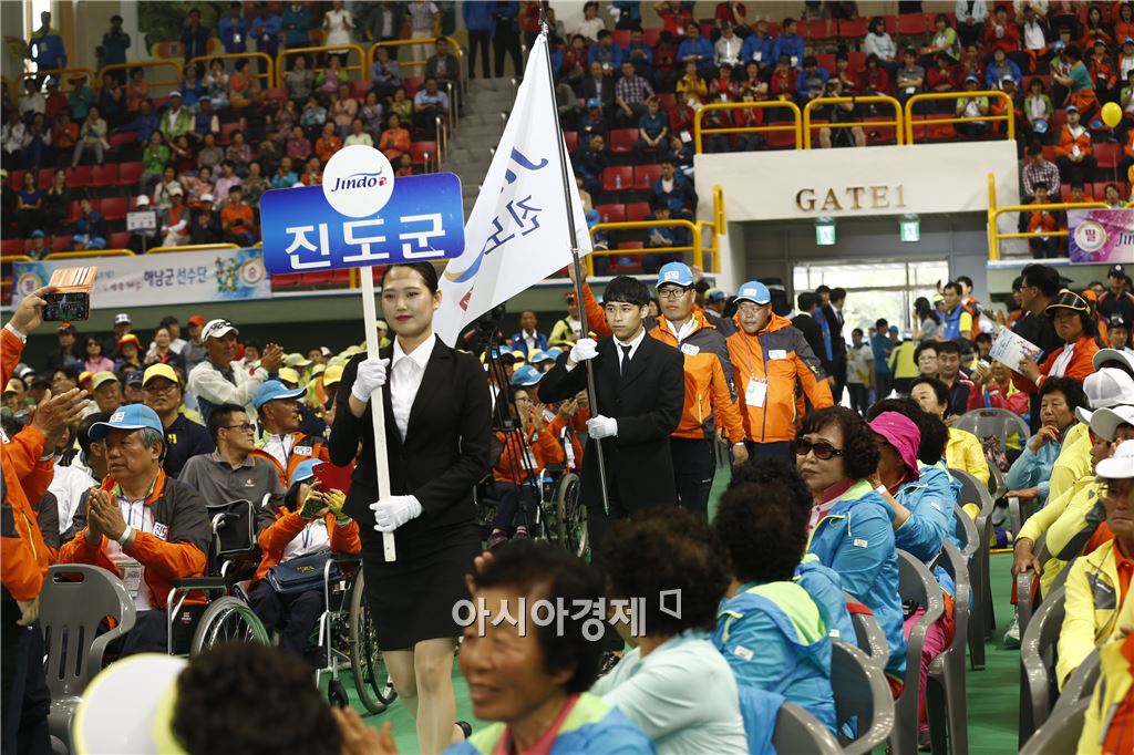 "하나 되는 우리의 꿈, 함께하는 전남의 힘!"[아시아경제 노해섭 기자]제24회 전라남도 장애인체육대회가 25일 진도군 실내체육관에서 개회식을 갖고 3일간의 열전에 돌입했다.이날 개회식은 진도북놀이 공연 등 식전행사를 시작으로 개회선언, 성화점화, 대회기 게양, 환영사, 대회사, 선수·심판 대표 선서, 시·군 화합 한마당 등의 순으로 열렸다.‘하나되는 우리의 꿈, 함께하는 전남의 힘’이라는 슬로건을 내건 이번 대회는 정식 14개, 시범 6개 등 총 20개 종목에서 22개 시·군 선수단 및 임원 3,700여명이 참가해 이틀간 진도실내체육관 외 각 종목 경기장에서 기량을 펼치고 있다.그동안 진도군은 성공적인 대회 개최를 위해 완벽한 경기장 시설과 선수단 편의 시설, 대회 종사자와 자원봉사자들에 대한 교육, 관광지·식당·숙박 업소의 친절 교육 등 만반의 준비를 마쳤다.이동진 진도군수는 환영사에서 “장애인 체육인들이 진도군에서 개최되는 체육대회에서 최상의 경기를 펼치고 함께 즐길 수 있도록 군민 모두가 정성을 다해 준비했다”며 “짧은 기간이지만 진도군에 머무르는 동안 아름다운 관광명소와 문화유적을 돌아보고 맛있고 몸에 좋은 청정 먹거리도 즐기면서 좋은 추억 가슴에 가득 담아 가길 기원한다”고 말했다.한편 전라남도 장애인체육대회는 올해로 24회째를 맞고 있으며, 스포츠를 통해 장애인 뿐만 아니라 우리 모두에게 큰 용기와 희망을 주고 있다.노해섭 기자 nogary@<ⓒ세계를 보는 창 경제를 보는 눈, 아시아경제(www.asiae.co.kr) 무단전재 배포금지>