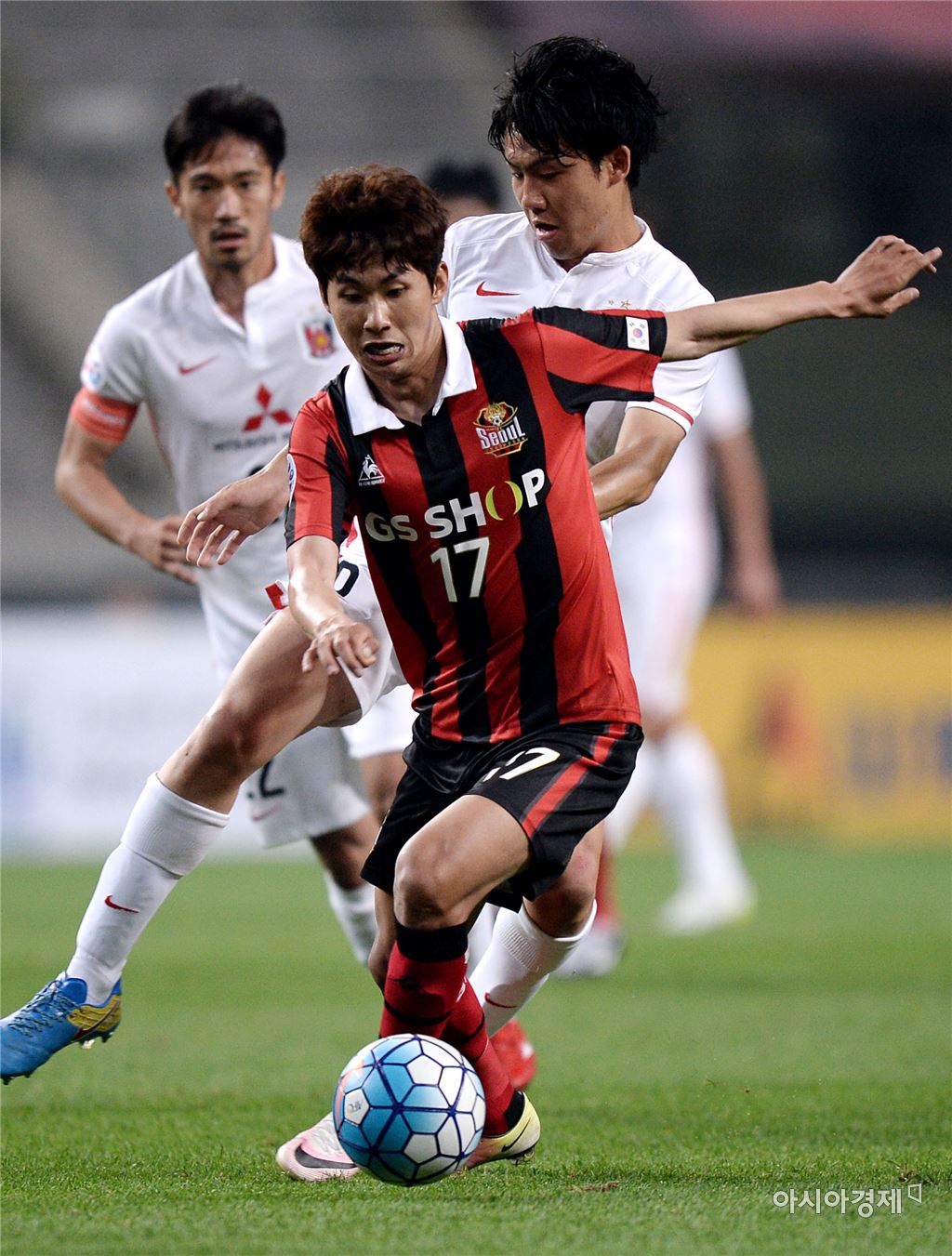 [상암=아시아경제 김현민 기자] 프로축구 FC 서울과 우라와 레즈(일본)과의 2016 아시아축구연맹(AFC) 챔피언스리그(ACL) 16강 2차전이 25일 서울월드컵경기장에서 열렸다. 서울 윤일록이 상대 수비를 뚫고 공격하고 있다. 김현민 기자 kimhyun81@asiae.co.kr<ⓒ세계를 보는 창 경제를 보는 눈, 아시아경제(www.asiae.co.kr) 무단전재 배포금지>