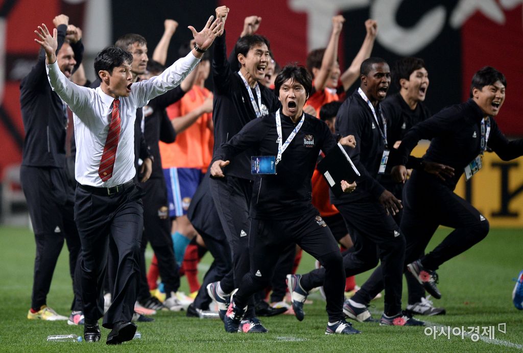 [상암=아시아경제 김현민 기자] 프로축구 FC 서울과 우라와 레즈(일본)과의 2016 아시아축구연맹(AFC) 챔피언스리그(ACL) 16강 2차전이 25일 서울월드컵경기장에서 열렸다. 서울 최용수 감독이 유상훈 골키퍼의 승부차기 선방에 환호하고 있다. 김현민 기자 kimhyun81@asiae.co.kr<ⓒ세계를 보는 창 경제를 보는 눈, 아시아경제(www.asiae.co.kr) 무단전재 배포금지>
