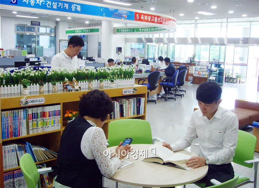 [아시아경제 노해섭 기자]진도군이 민원인과 편안하게 소통할 수 있는 열린 민원공간을 조성하는 등 민원실을 산뜻하게 단장했다.26일 진도군에 따르면 ‘편안하게 소통하는 열린 민원공간’이라는 주제로 민원인 편의시설 보강과 장애인?임산부등 사회배려층을 위한 민원환경 강화에 중점을 두었다. 이번 환경개선은 그동안 단순히 민원업무를 보는 딱딱한 분위기에서 벗어나 민원실을 찾는 군민들이 보다 쾌적한 환경에서 편안하게 민원을 접수하고 해결 할 수 있도록 조성했다. 또 민원인 중심에서 편리하고 공정한 민원처리가 이뤄지도록 민원실 안내도, 민원처리 흐름도 및 다양한 민원처리제도 등을 민원인이 쉽게 접할 수 있도록 배치했다. 특히 군민의 기증도서로 꾸며진 힐링 북카페와 작은 쉼터공간을 조성되어 민원인의 큰 호응을 얻고 있다. 고강희 진도군 민원봉사과 민원행정담당은 “앞으로도 진도군청 민원실이 군민중심의 공간으로써 민원인과 서로 소통할 수 있도록 친절하고 공정한 민원서비스제공에 지속적인 노력을 하겠다”고 말했다.노해섭 기자 nogary@<ⓒ세계를 보는 창 경제를 보는 눈, 아시아경제(www.asiae.co.kr) 무단전재 배포금지>