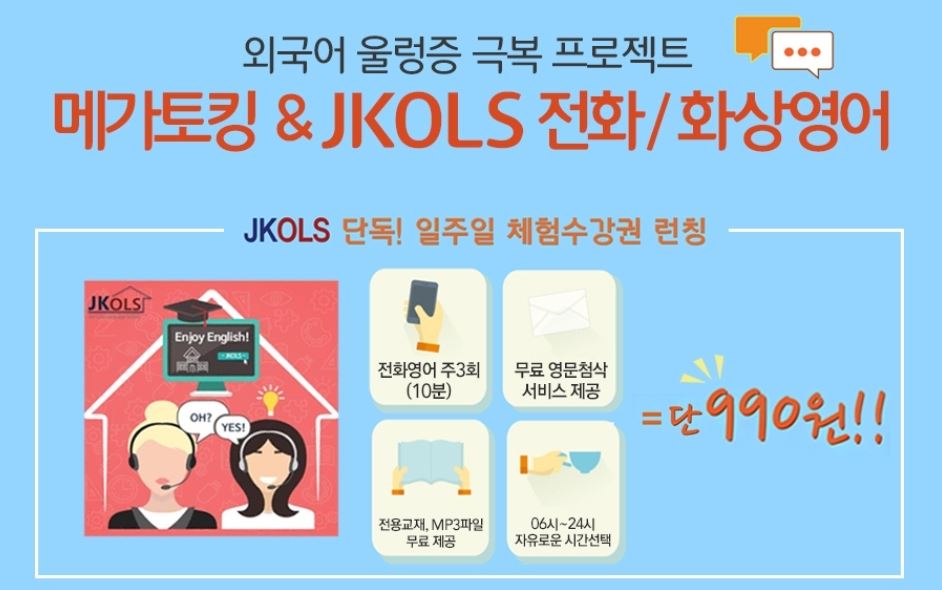 [아시아경제 조호윤 기자]롯데마트몰이 외국어 교육서비스를 판매한다. 롯데마트몰은 다음 달 8일까지 ‘메가토킹&JKOLS 전화 영어’ 판매를 진행한다고 27일 밝혔다. 메가토킹&JKOLS 전화 영어는 지난 2012년도에 설립된 영어 전문 교육 회사 유에듀케이션에서 제공하는 서비스로, 해외에 지사를 두고 현지 원어민 강사가 직접 전화 교육을 제공하는 것이 특징이다.대표적인 상품으로 일주일 동안 원하는 시간에 ‘전화영어 주 3회 이용’, ‘무료 영문첨삭 서비스’, ‘전용교재 및 MP3파일’을 이용할 수 있는 ‘JKOLS 전화영어 일주일 이용권’을 990원 특가에 롯데마트몰 단독으로 선보인다.기간 동안 메가토킹&JKOLS 전화영어 3개월 이용권 구매 고객에 한해 특별 혜택을 제공해 3개월(주3회) 구매 시 무료 영작서비스와 문화상품권 5000원권을, 3개월(주2회) 구매 시 무료 영작서비스와 엔젤리너스 커피 쿠폰을, 3개월(주5회) 구매 시 무료 영작서비스와 함께 롯데백화점 상품권(1만원)을 증정한다.장동석 롯데마트 모바일 제휴상품 상품기획자(MD)는 “보다 다양한 상품들을 고객들에게 선보이기 위해 이번 전화 교육 관련 상품들을 준비했다”며, “새로운 카테고리 운영을 통해 고객 니즈를 만족시키기 위해 노력하겠다”고 말했다. 조호윤 기자 hodoo@asiae.co.kr<ⓒ세계를 보는 창 경제를 보는 눈, 아시아경제(www.asiae.co.kr) 무단전재 배포금지>