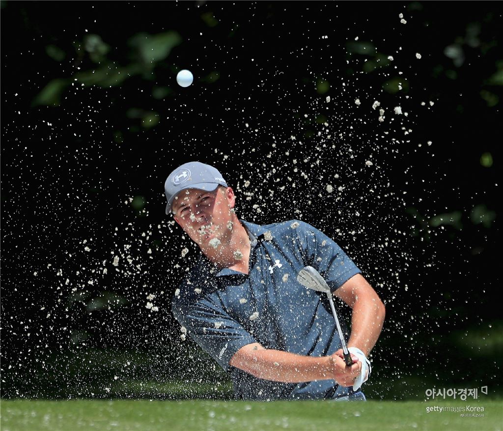조던 스피스가 딘앤델루카 셋째날 5번홀에서 벙커 샷을 하고 있다. 포트워스(美 텍사스주)=Getty images/멀티비츠