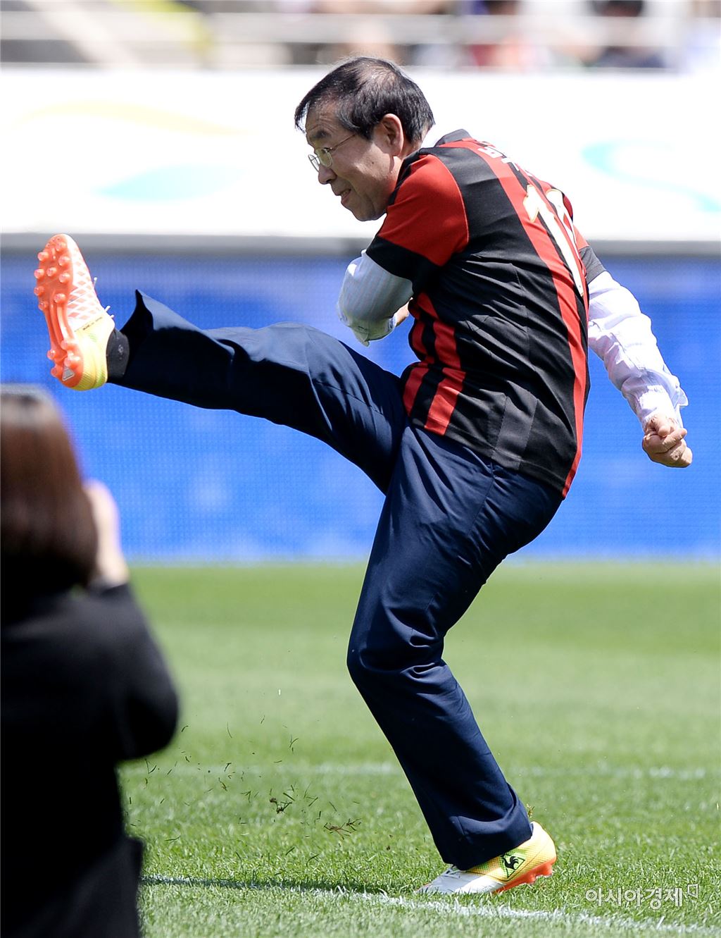 [아시아경제 김현민 기자]프로축구 FC서울과 전남 드래곤즈의 K리그 클래식 경기가 29일 서울월드컵경기장에서 열렸다. 경기에 앞서 박원순 서울시장이 시축하고 있다.김현민 기자 kimhyun81@asiae.co.kr<ⓒ세계를 보는 창 경제를 보는 눈, 아시아경제(www.asiae.co.kr) 무단전재 배포금지>