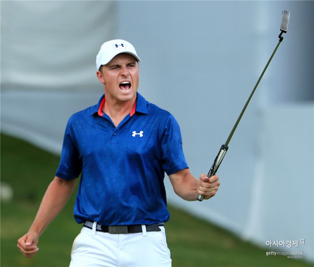 조던 스피스가 딘앤델루카 우승이 확정되는 순간 환호하고 있다. 포트워스(美 텍사스주)=Getty images/멀티비츠