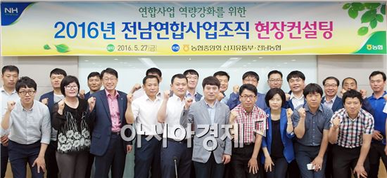 “농협 중심의 산지유통 전문조직 육성” [아시아경제 노해섭 기자]농협전남지역본부(본부장 강남경)는 27일 전남원예농산물 판매를 담당하는 시군연합사업단 및 원예조공법인 30여명과 함께 연합마케팅사업 활성화를 위한 현장컨설팅을 실시했다.이날 컨설팅은 농협중앙회 산지유통 전문가 5명을 초청하여 전남 연합사업의 문제점을 개선하고 향후 발전방향을 모색하여 전남농협 연합조직이 한단계 업그레이드 될 수 있는 계기를 마련하는 자리로, 전남 각 시군의 산지유통종합계획을 공유하고, 연합사업 현장지원단 운영계획 및 추진방향에 대하여 심도있는 논의가 이루어 졌고, 농협중앙회 산지유통부 및 청과사업국,aT,농업기술센터 등 산지유통 전문가로 구성된 현장지원단을 전남농협에 지원하여 수 입농산물 대응과 소비지 니즈를 충족할 수 있는 내실있고 튼튼한 연합조직을 육성하자고 다짐했다.현재 전남농협 연합마케팅사업은 1,191억원으로 전년동기 대비 360억원 증가, 43.3% 성장, 전국 도별 9개중 1위를 달리고 있고, 2016년 연합마케팅사업 3,000억 달성을 위해 도단위 광역브랜드개발, 튼튼한 공선출하회 육성, 마케팅활동 강화를 통한 출하처 확대 등 다양한 노력을 하고 있다.강남경 본부장은 "현장컨설팅 지속 실시로 시군연합조직을 농협 판매사업의 핵심조직으로 육성하여 유통환경 변화에 능동적으로 대처해전남농산물 판매확대에 최선을 다하겠다"고 밝혔다.노해섭 기자 nogary@<ⓒ세계를 보는 창 경제를 보는 눈, 아시아경제(www.asiae.co.kr) 무단전재 배포금지>