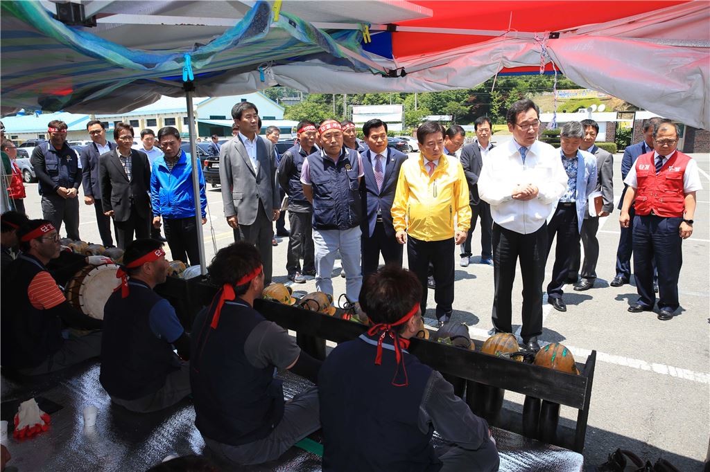 구충곤 전남 화순군수가 지난 30일 이낙연 전남도지사와 함께 화순광업소를 방문해 정부의 폐광 정책 철회를 주장하며 천막농성 중인 근로자들과 감담회를 갖고 폐광 반대의사를 재차 표명했다.