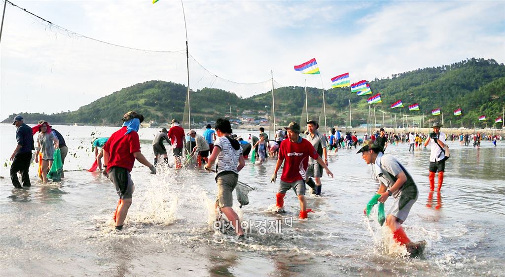 [아시아경제 노해섭 기자]진도군에서 전통 방식의 개매기 바다체험행사가 열린다. 31일 진도군에 따르면 진도읍 청용어촌체험마을 앞 갯벌에서 6월 4일 오후 3시부터 개매기 바다체험 행사를 개최한다.개매기는 조석간만의 차가 클 때 갯벌에 그물을 쳐 놓고 밀물 조류를 따라 들어 온 물고기가 썰물 때 갇히도록 하는 전통 고기잡이 방식이다.물이 빠진 갯벌위 그물에는 주로 숭어, 농어, 돔 등이 갇히게 되며, 이때 체험 관광객들이 들어가 맨손으로 직접 잡는다. 잡은 물고기는 회로도 맛볼 수 있다.