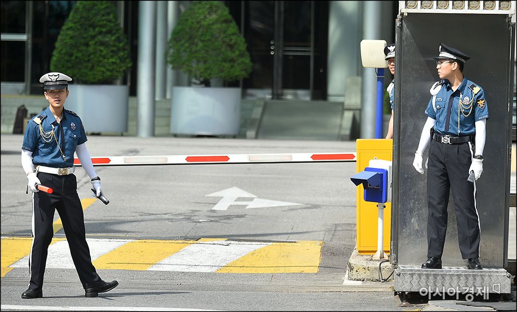 [아시아경제 윤동주 기자] 1일 10년만에 교체된 경찰 하복을 입은 의무경찰들이 서울 경찰청 입구에서 경계근무를 서고 있다.윤동주 기자 doso7@asiae.co.kr<ⓒ세계를 보는 창 경제를 보는 눈, 아시아경제(www.asiae.co.kr) 무단전재 배포금지>