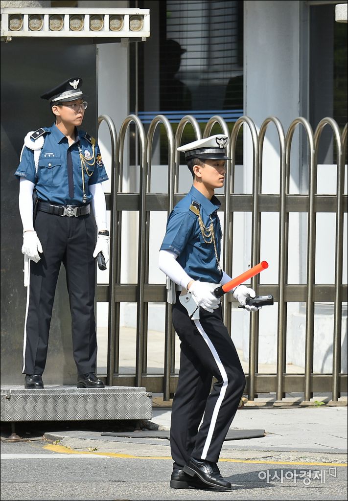 [아시아경제 윤동주 기자] 1일 10년만에 교체된 경찰 하복을 입은 의무경찰들이 서울 서대문구 경찰청 입구에서 경계근무를 서고 있다.윤동주 기자 doso7@asiae.co.kr<ⓒ세계를 보는 창 경제를 보는 눈, 아시아경제(www.asiae.co.kr) 무단전재 배포금지>