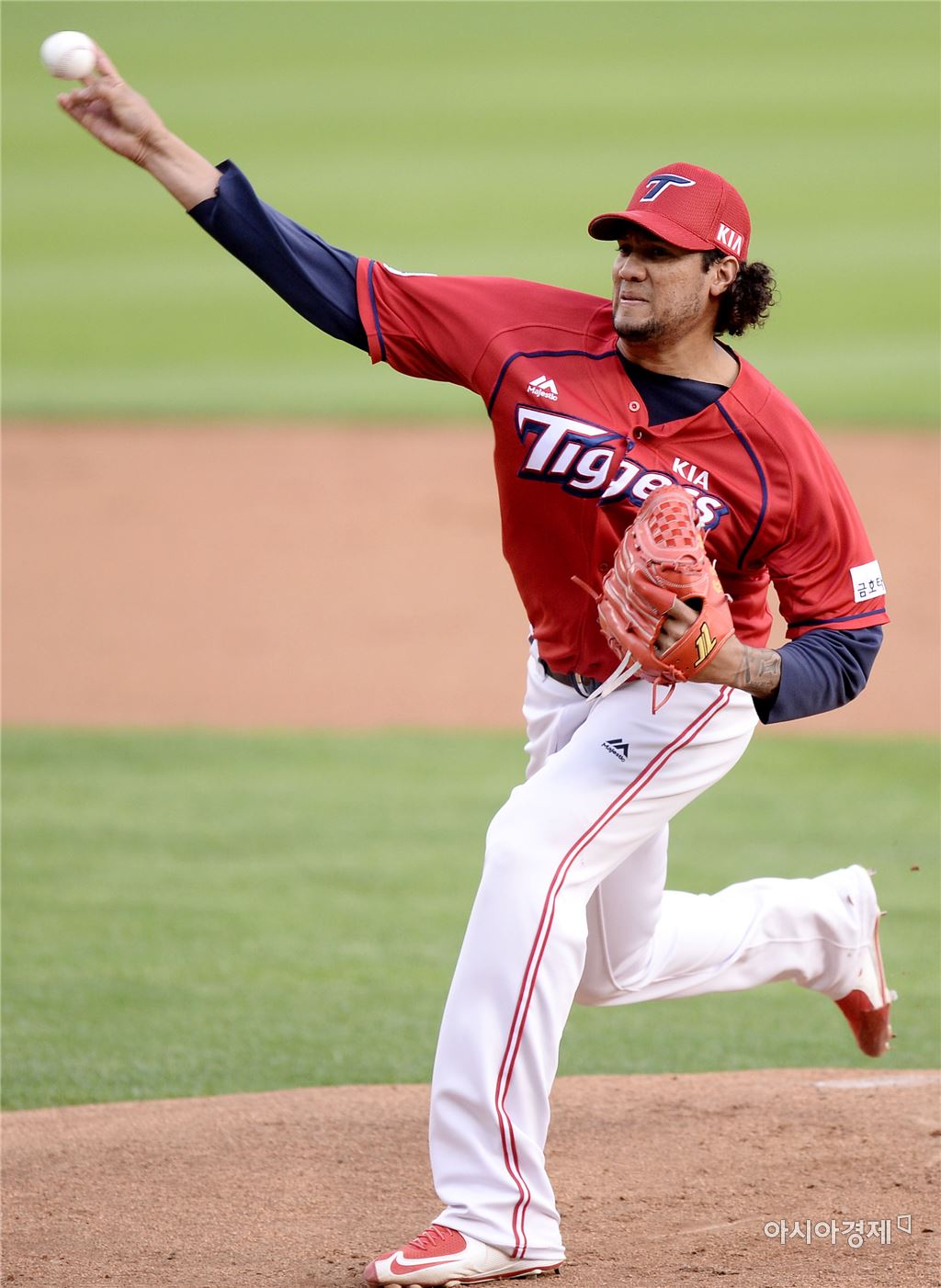[잠실=아시아경제 김현민 기자] 프로야구 KIA 타이거즈와 LG 트윈스의 2016 KBO리그 경기가 1일 잠실구장에서 열렸다. KIA 선발투수 헥터가 역투하고 있다. 김현민 기자 kimhyun81@asiae.co.kr<ⓒ세계를 보는 창 경제를 보는 눈, 아시아경제(www.asiae.co.kr) 무단전재 배포금지>