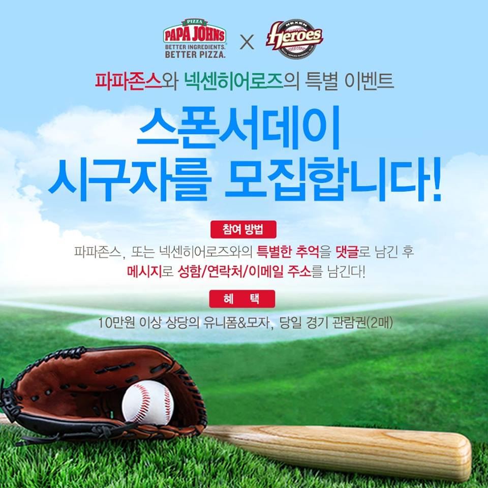 [아시아경제 오주연 기자]파파존스가 넥센 히어로즈 스폰서데이를 맞아 '행운의 시구자' 모집 이벤트를 실시한다고 2일 밝혔다.넥센 히어로즈의 공식 스폰서인 파파존스는 오는 5일까지 파파존스 공식 페이스북 이벤트 게시글에 파파존스 혹은 넥센 히어로즈와의 특별한 추억을 댓글로 남긴 후 페이스북 메시지로 이름과 연락처, 이메일 주소를 보내는 이들 중 추첨을 통해 시구자를 선정할 예정이다. 당첨된 행운의 시구자 1인에게는 이달 16일 고척 스카이돔에서 열리는 넥센 히어로즈 경기에서 시구 기회를 제공하며 10만 원 상당의 넥센 히어로즈 유니폼과 모자, 당일 경기 관람권(2매)을 증정한다. 오주연 기자 moon170@asiae.co.kr<ⓒ세계를 보는 창 경제를 보는 눈, 아시아경제(www.asiae.co.kr) 무단전재 배포금지>