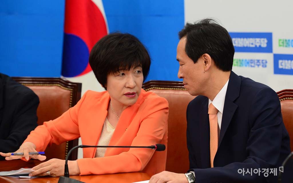 [아시아경제 백소아 기자] 2일 서울 영등포구 국회의사당 더불어민주당 원내대표실에서 열린 더불어민주당 가계부채 TF 발족식에서 김영주 가계부채TF 단장(왼쪽)과 우상호 원내대표(오른쪽)가 이야기를 나누고 있다.백소아 기자 sharp2046@asiae.co.kr<ⓒ세계를 보는 창 경제를 보는 눈, 아시아경제(www.asiae.co.kr) 무단전재 배포금지>