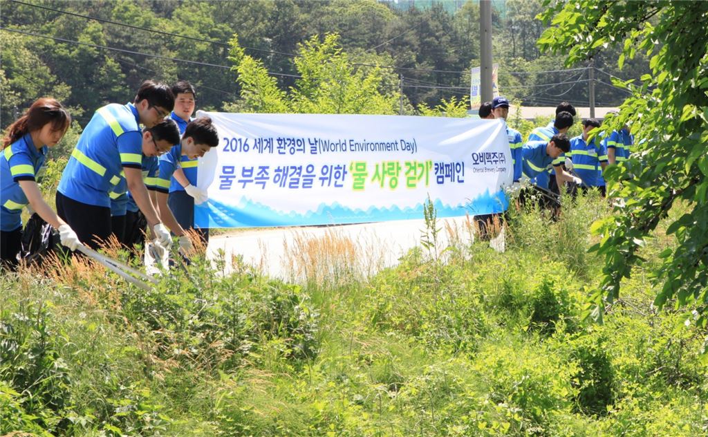 [아시아경제 이주현 기자]오비맥주의 3개 생산공장 임직원들이 국제연합(UN)이 지정한 ‘세계 환경의 날(6월5일)’을 맞아 ‘물’을 주제로 전사적인 환경보호 활동을 벌였다.경기도 이천, 청주, 광주에 위치한 오비맥주의 3개 생산공장 임직원들은 2일 오전 공장 부근 하천 일대에서 하천 둔치 쓰레기 줍기와 수상 오물제거, 하천 밑바닥 청소 작업을 병행하며 ‘물 사랑 걷기’ 캠페인을 펼쳤다.물 사랑 걷기 캠페인은 개발도상국 여성들과 어린이들이 물을 구하기 위해 하루 동안 걷는 평균 거리인 6km를 직접 체험하는 오비맥주의 직원 참여 행사다.공장 직원들은 이날 공장 폐수의 외부 배출을 특별 점검하고 하천수 수질 샘플링, 유해식물 제거 등을 통한 하천 생태계 보호 활동에도 참여했다. 각 공장 구내 식당에서는 이 날을 ‘음식 남기지 않는 날’로 지정해 음식물 쓰레기를 줄이기 위한 친환경 활동에도 나섰다.오비맥주는 공장별로 환경지식 경연대회, 물절약 아이디어 공모대회, 환경보호 실천 서약을 위한 환경 스티커 붙이기, 하천 하이킹 등 다양한 환경 이벤트로 직원들의 환경의식 고취에 심혈을 기울였다. 해당 지자체와 지역 환경연구소 등 외부 기관과도 연계해 환경 캠페인을 지속 확대해 나갈 계획이다.이날 캠페인에 앞서 오비맥주의 글로벌 본사인 AB인베브의 총괄 최고경영자(CEO) 카를로스 브리토는 동영상 메시지를 통해 “환경은 다음 세대에게 물려줄 우리 모두의 소중한 자산”이라며, “환경보전을 핵심 경영이념으로 삼고 있는 기업으로서 더 나은 세상’을 만들기 위해 더욱 매진하자”고 강조했다.본사 임직원들은 2008년부터 벌여 온 ‘만원의 행복, 물 사랑 걷기’ 캠페인에 참여해 참가 직원 수만큼 적립금을 물 부족 지역에 기부하기로 했다.오비맥주는 2010년부터 몽골의 사막화 방지와 황사 예방을 위해 ‘몽골 카스 희망의 숲’ 조림사업을 전사 캠페인으로 벌이는 등 환경보호 활동에 앞장서고 있다.이주현 기자 jhjh13@asiae.co.kr<ⓒ세계를 보는 창 경제를 보는 눈, 아시아경제(www.asiae.co.kr) 무단전재 배포금지>