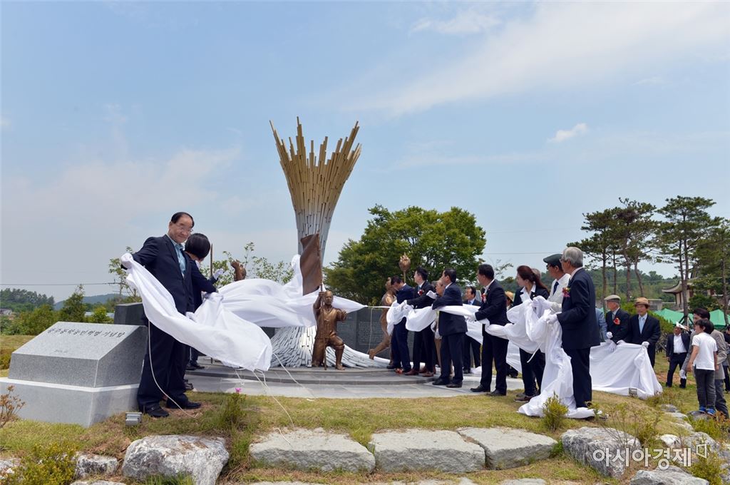 [아시아경제 노해섭 기자]3일 광주 남구 이장동 동학농민혁명기념공원 준공식에서 최영호 남구청장을 비롯한 동학농민혁명 유족회, 동학농민혁명 기념사업회, 고씨 삼형제 후손 및 문중 관계자들이 기념탑 제막식을 하고 있다.노해섭 기자 nogary@<ⓒ세계를 보는 창 경제를 보는 눈, 아시아경제(www.asiae.co.kr) 무단전재 배포금지>